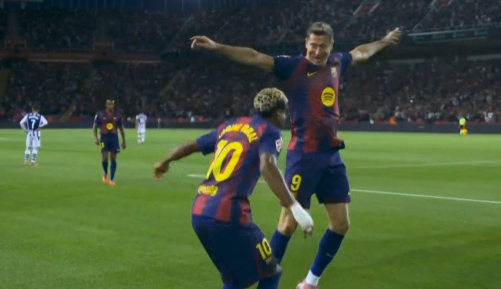 هدف ليفاندوفسكي في مرمي ريال سوسيداد اسيست لامين يامال