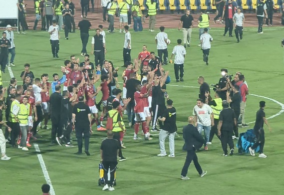 لاعبو الاهلي يحتفلون مع الجماهير بعد الفوز علي الزمالك في الدوري المصري
