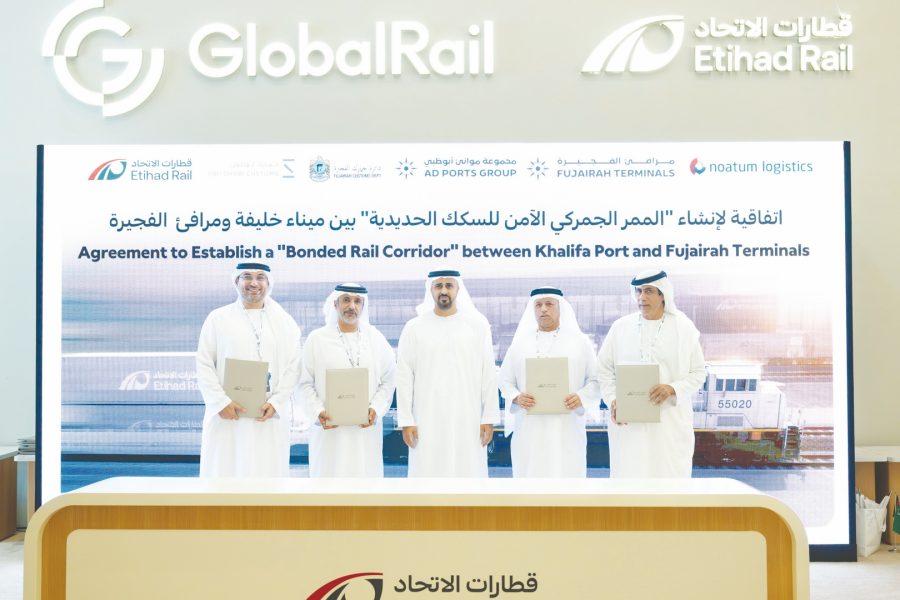 شهد سمو الشيخ ذياب بن محمد بن زايد آل نهيان، نائب رئيس ديوان الرئاسة للشؤون التنموية وأسر الشهداء، رئيس مجلس إدارة شركة قطارات الاتحاد، توقيع اتفاقية بين قطارات الاتحاد المطور والمشغل لشبكة السكك الحديدية الوطنية في دولة الإمارات، وجمارك أبوظبي، وجمارك الفجيرة، ومجموعة موانئ أبوظبي، و مرافئ الفجيرة، وشركة نواتوم للخدمات اللوجستية، لإطلاق مشروع الممر الجمركي الآمن لقطار الاتحاد بين ميناء خليفة في أبوظبي ومرافئ الفجيرة.