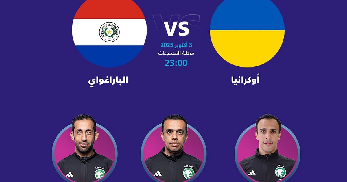 أسند الاتحاد الدولي لكرة القدم (فيفا) إدارة مباراة أوكرانيا والباراغواي، ضمن ختام دور المجموعات من بطولة كأس العالم للشباب تحت 20 عامًا 2025، إلى طاقم تحكيم سعودي بقيادة الحكم الدولي خالد الطريس.