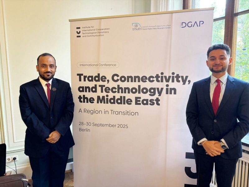 شارك مركز تريندز للبحوث والاستشارات، ممثلاً بالباحث الرئيسي محمد الظهوري، مدير إدارة الدراسات السياسية المتقدمة بالمركز، في المؤتمر الدولي “منطقة طور التحول: التجارة والترابط والتكنولوجيا في الشرق الأوسط”، الذي نظمه معهد التعاون الدولي والدبلوماسية التكنولوجية والاتصال الألماني (ICI).
