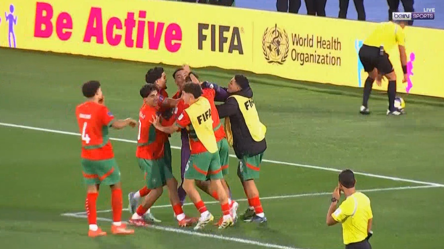 ركلة الجزاء الحاسمة وفرحة لاعبي المغرب بعد الفوز علي فرنسا والتأهل لنهائي كأس العالم للشباب