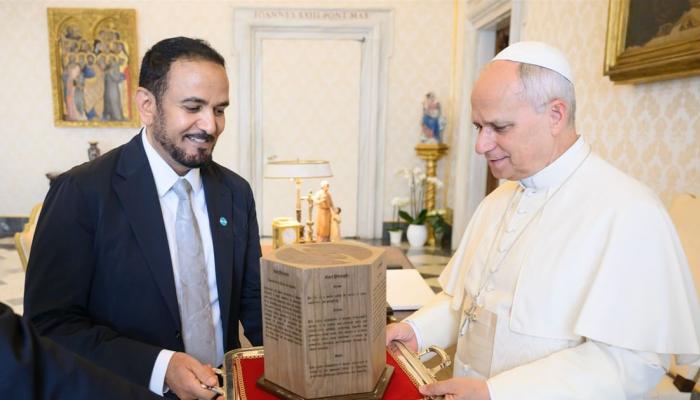 جاء ذلك خلال لقاء عقده قداسته في الفاتيكان مع السفير الدكتور خالد غانم الغيث، الأمين العام للجنة العليا للأخوة الإنسانية، الذي لبى دعوة الحضور تأكيدا على الالتزام المشترك بتعزيز السلام والتضامن الإنساني انسجاما مع مبادئ وثيقة أبوظبي للأخوة الإنسانية.