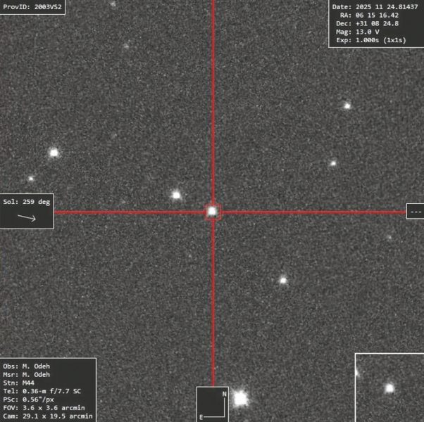 وأوضح أن الكويكب المتسبب بالاحتجاب يبلغ قطره 523 كيلومترًا، وكان عند لحظة العبور على مسافة 5.5 مليار كيلومتر من الأرض في مدار يقع خلف كوكب نبتون، مشيراً إلى أن لمعانه الشديد الخفوت (19.7 قدر) جعله غير مرئي وقت الحدث، في حين يقع النجم المحتجب على بُعد 4430 سنة ضوئية، ما يبرز دقة الحسابات الفلكية التي اعتمد عليها الرصد.