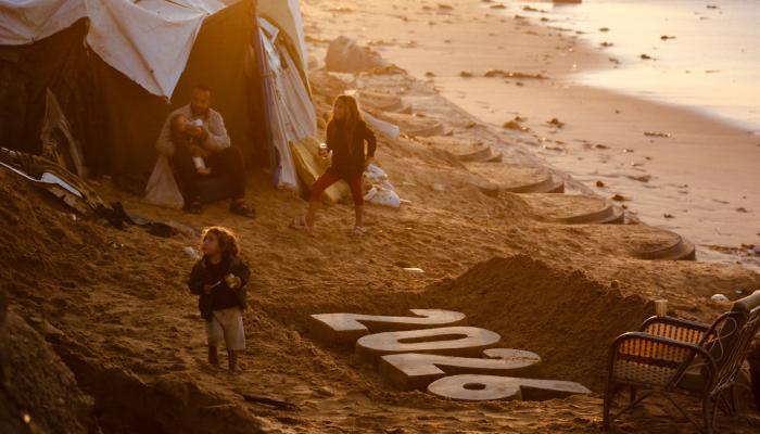 وفي مدينة غزة، رسم مراهق الرقم “2026” على خيمته، بينما كان فنان محلي منكبا على نحت الرقم نفسه على الرمال في دير البلح بوسط غزة.