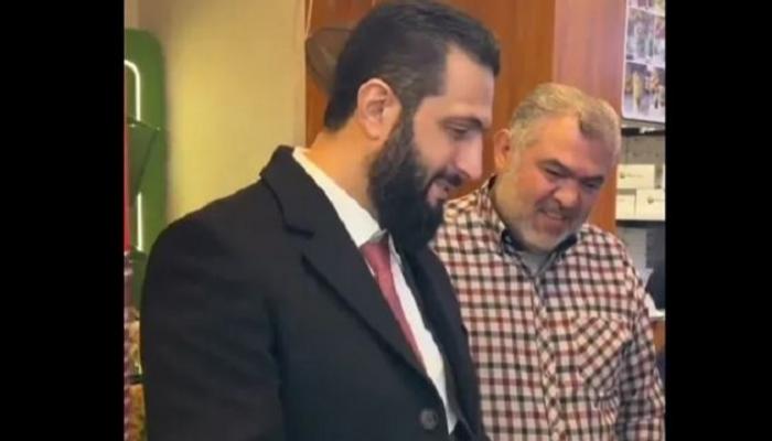 وظهر الشرع مساء الإثنين في لقطات مصورة وخو يتجول في أحد محلات منطقة المزة في دمشق.