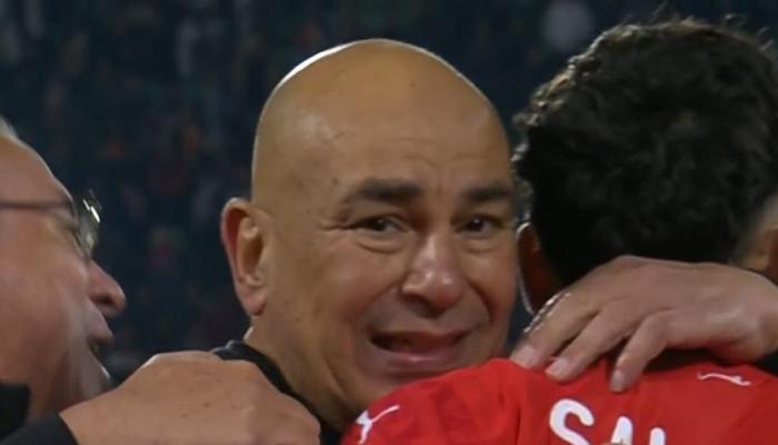 ورصدت عدسات الكاميرات بكاء حسام حسن بعد إطلاق صافرة نهاية المباراة مباشرةً وحسم التأهل بشكل رسمي.