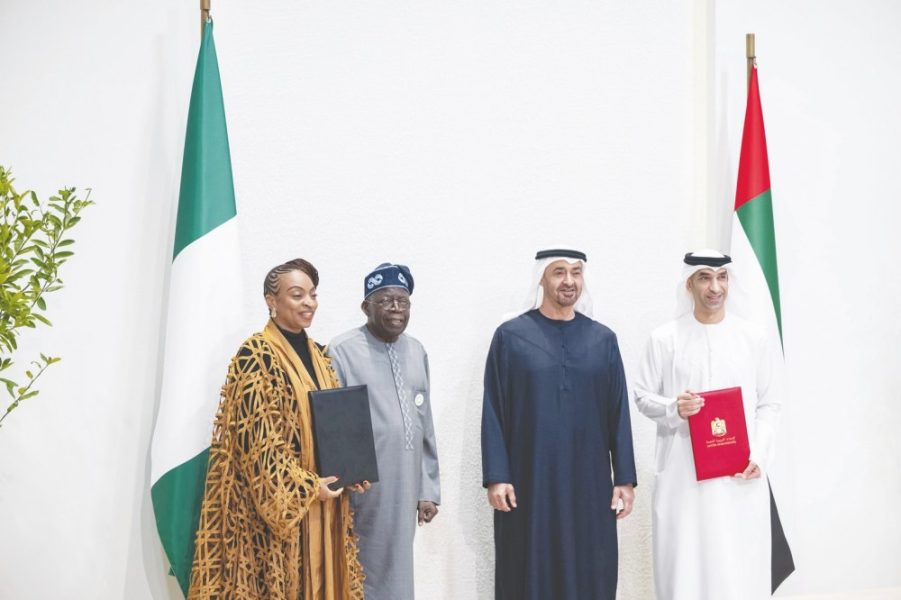 شهد صاحب السمو الشيخ محمد بن زايد آل نهيان، رئيس الدولة “حفظه الله”، وفخامة بولا أحمد تينوبو، رئيس جمهورية نيجيريا الاتحادية، مراسم توقيع اتفاقية الشراكة الاقتصادية الشاملة بين دولة الإمارات ونيجيريا، والتي تهدف إلى تدشين مرحلة جديدة من العلاقات التجارية والاستثمارية المزدهرة بين البلدين في إطار سعيهما إلى تحقيق التنمية المستدامة.