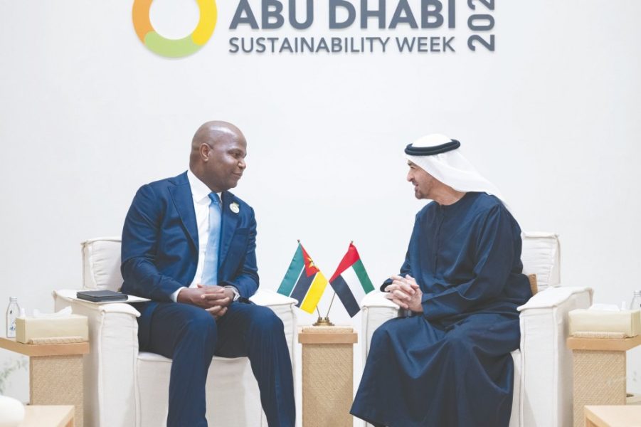 التقى صاحب السمو الشيخ محمد بن زايد آل نهيان رئيس الدولة “حفظه الله” أمس فخامة دانييل شابو رئيس جمهورية موزمبيق الذي يقوم بزيارة عمل إلى الدولة يشارك خلالها في فعاليات “أسبوع أبوظبي للاستدامة 2026 ” الذي يعقد في مركز أبوظبي الوطني للمعارض “أدنيك”.