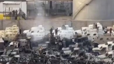 مشاهد تظهر آثار احتراق العتاد وكميات الأسلحة الإماراتية المهربة عبر ميناء المكلا بعد الضربة السعودية